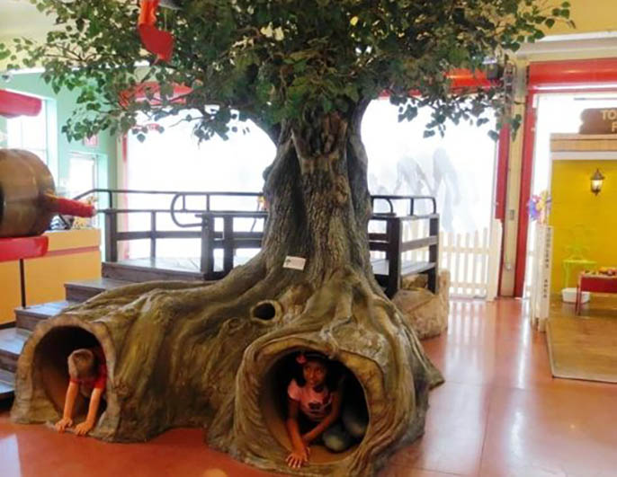 仿真樹還可以制作出很多實用性的物品,比如通道、滑梯等等。下圖是把滑梯進行裝飾,現在的兒童樂園體育設施已經度過了步就是有沒有的問題,第二部就是漂亮的環境問題,北京廠家在兒童樂園為很多的實用型的設施制作裝飾,把滑梯等裝飾成仿真樹的樣子,既解決了實用又有了美觀。