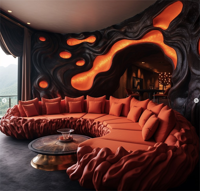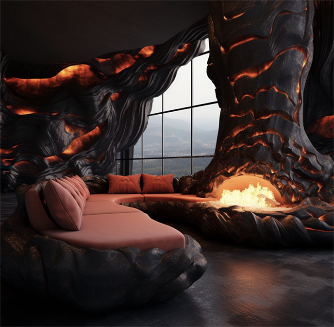 仿山洞藝術(shù)客廳是一種結(jié)合自然與現(xiàn)代的室內(nèi)空間
