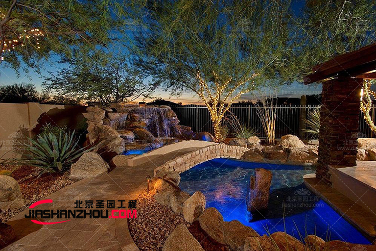 在庭院的悠然景致中,一座仿真假山靜靜地佇立,與周圍的魚池共同構(gòu)成了一處靜謐而雅致的角落。仿真假山,以英石為材質(zhì),形態(tài)別致,疊石工藝湛,為整個庭院帶來了致的層次感和視覺上的享受。