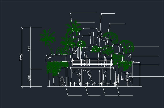 項目描述:仿真假山施工圖制作于平頂山市福山廣場,仿真假山內部有樓梯,到達仿真假山中部的觀景臺,觀景臺下是玻璃地板,瀑布的水從腳下流出,仿真假山長12米,高度10米,寬度12米。