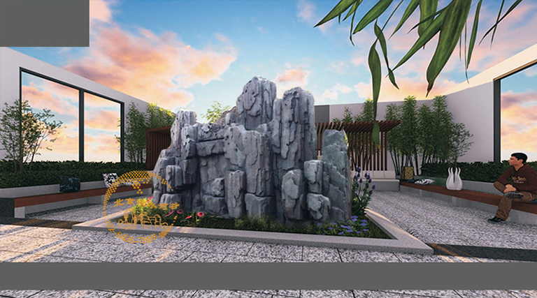 屋頂花園假山效果圖-高端別致的屋頂花園假山效果圖